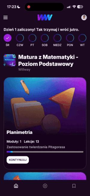 Nie! Willway przechowuje wszystkie materiały na naszym serwerze. Aplikacja działa jak platformy streamingowe – nie musisz pobierać kursów, co pozwala Ci oszczędzać pamięć na telefonie.